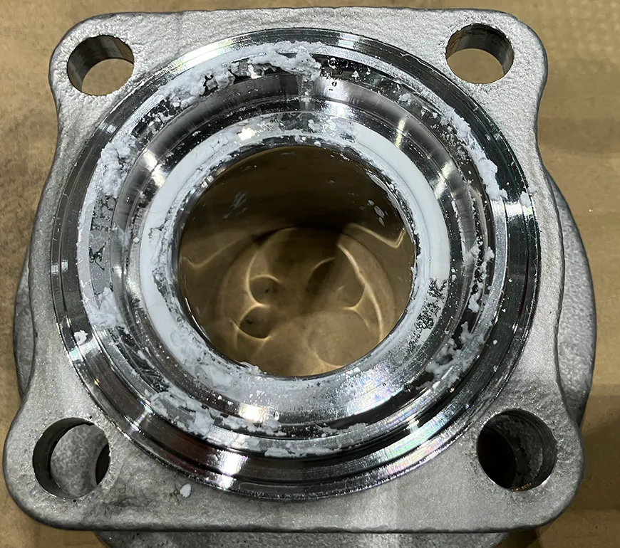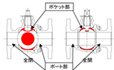 ボールバルブにおいて、作動回数の増加や長期使用により、ボールとシートの接触部が摩耗し、シートが摩滅している事例が確認されています。この摩耗によりシール性が低下し、内部流体の漏れが発生します。