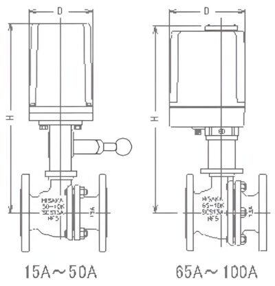 - 電動式自動弁には補助リミットスイッチが常備されています。また、手動でバルブを開閉したい場合は手動操作機構付にすることで開閉が可能です。