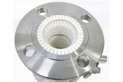 セラミックチップをライニングしたY型三方バルブは、耐磨耗性に優れ、高硬度・高速の粉体輸送に適しています。(二方バルブにも施工可能です。)