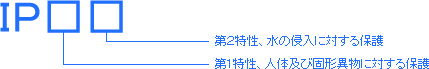 国際電気協会(IEC)にて設定された基準(IEC529)で、IP(盤体の内部に収納する電気機器を外部より保護しうるレベル)として、人体及び固形異物に対する保護、水に対する保護を等級別に分類、規定しています。
